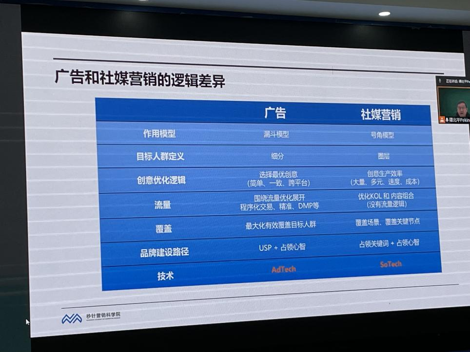 本站讯(通讯员韩亚亚 徐红)为建设产教融合育人的开放办学机制和人才培养的协同机制,beat365英国正版唯一网址文学与新闻传播学院与上海秒针网络科技有限公司秒针营销科学院合作开设行业协同课程《数字营销》。2023年4月11日上午,秒针营销科学院院长谭北平先生开始了《数字营销》课程的教学,此门课程由广告学教研室主任徐红教授负责牵头组织,采取线上、线下相结合的教学形式,2022级新闻与传播学2022级专硕和广告学20级本科共计82名同学参加了此门课程的学习。