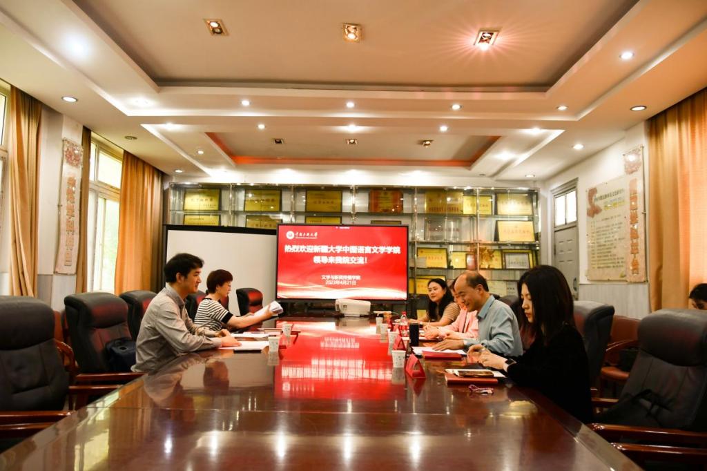 陶喜红院长首先对两位副院长的到来表示热烈欢迎,并就我院学科专业设置及调整、办学规模、数字人文、人才培养方案等发展情况进行了介绍。与此同时,李圃院长围绕新疆大学中国语言文学学院建设、平台建设、师资队伍与学科研究、文化传承与社会服务、特色活动等进行介绍。