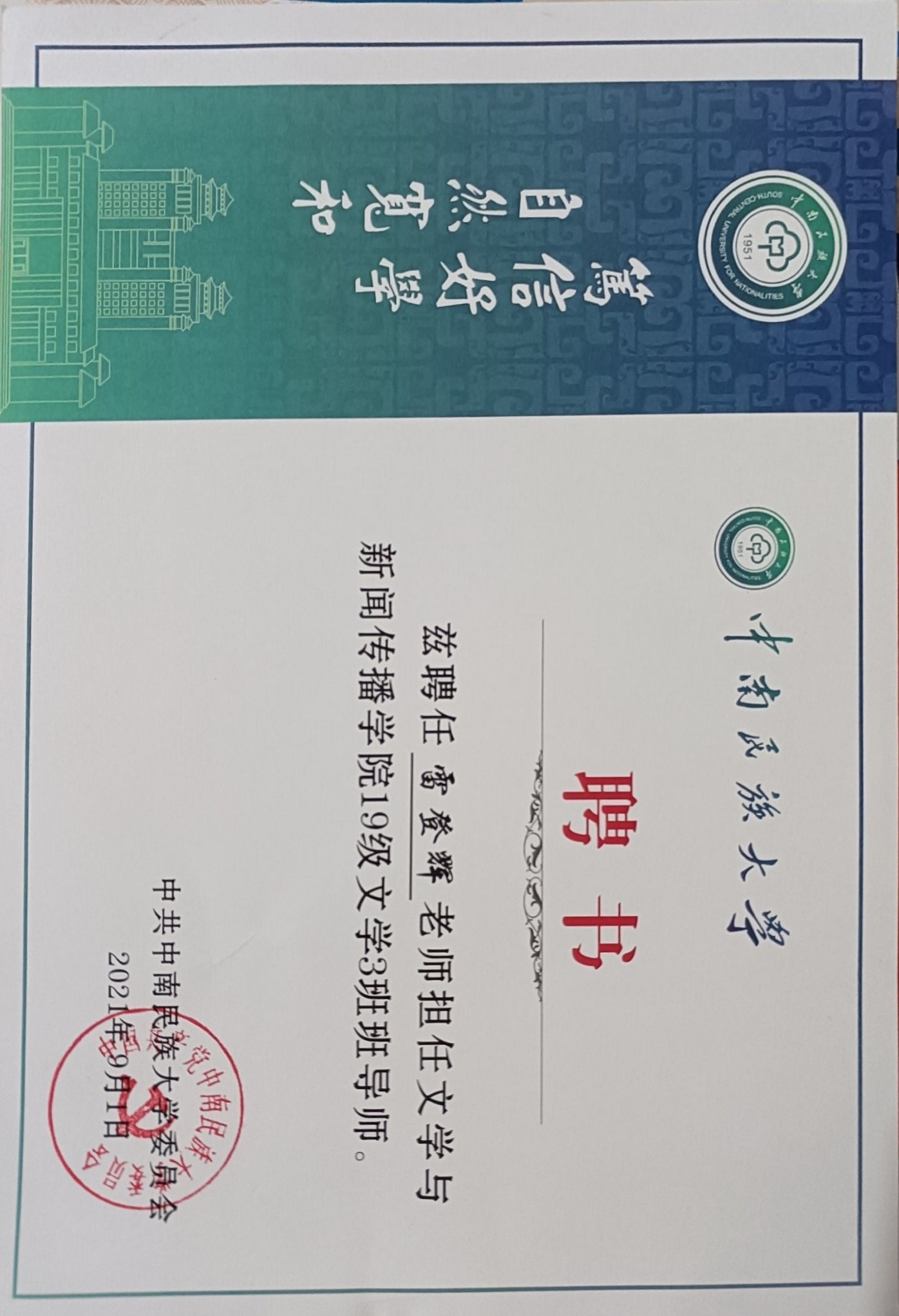 因了解到班级不少同学英语综合能力较差的问题,雷老师曾结合自己的语言优势,在2021年暑期自发为班级同学进行英语学习训练营。每到重要阶段,雷老师都会通过QQ、微信、企业微信等多个渠道为同学们学业问题进行规划、答疑。在同学们和雷老师的共同努力下,1903班级班级氛围良好,总体学习成绩优异,四六级通过率相对较高,已经有4名同学通过免试方式保研成功,班级也多次学校和学院优秀班集体、红旗团支部等荣誉称号。