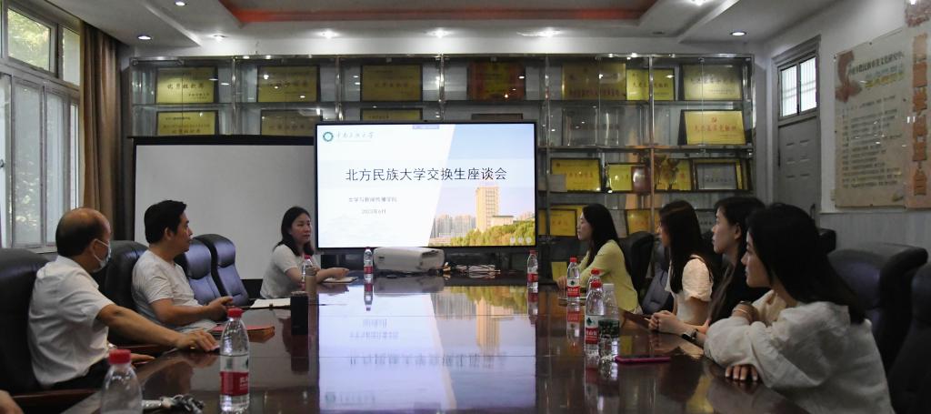 本站讯(通讯员柯萍)6月14日下午,我院在文一楼203会议室召开了交换生座谈会。我院院长陶喜红、副院长陈啸、党政办主任陈琳、学工办主任黄谦与在beat365官网已交换一年的北方民族大学的4名同学出席了会议。
