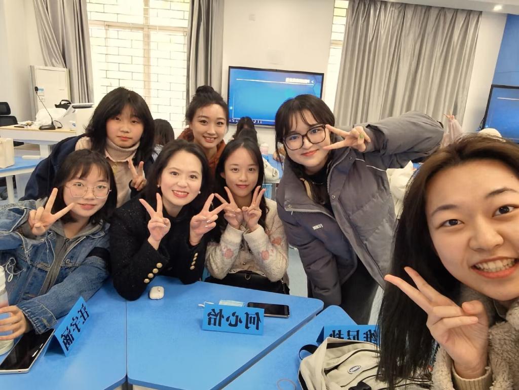 在生活中,田老师更是学生的“知心姐姐”。了解学生所思所想,关注学生心理变化,她的步伐从未停过。“大家在学习和生活中有需要帮助的地方都可以来找我沟通,我一定尽力相助。”田老师是这么说的也是这么做的。在从教的8年间,她多次指导学生参与竞赛,奖项颇丰;多次帮助学生解决生活中、思想上的各种困惑,被学生亲切地称呼为“园子姐姐”。今年,田老师担任新闻类2302班的班导师,考虑到新生远离家乡,可能会出现低落和焦虑情绪,在开学的第一次见面会上,田老师为每一位同学都准备了饮料,并且亲切地和各位同学交流。在心理安全教育班会上,田老师又以自己的经历为例,分享自己的经验并亲切嘱咐同学们要注意身体健康,多锻炼、少熬夜。