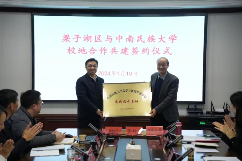 签约仪式上,陶喜红院长为梁子湖区授牌“实践教学基地”,表示将以此次合作为契机,实现互学互鉴、互利共赢发展目标,全力打造校地共建示范样板。梁子湖区委常委、宣传部长胡映东表示,本次校地合作将为梁子湖人才培养和融媒宣传注入新的活力,助力梁子湖区高质量发展。郝永华教授、田园子副教授获聘“梁子湖区文化宣传专家顾问”。