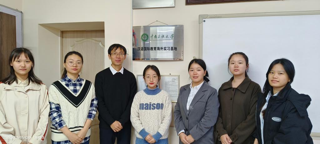 带队老师高逢亮介绍,学校十分注重国际交流合作,师生积极传播中华文化,在“一带一路”背景下讲好中国故事。国际哈中语言学院是哈萨克斯坦国家教育部批准的、以培养汉语专长人才为特色的职业学院,是beat365官网于2019年挂牌的首个海外国际中文教育实习基地,这也是国家民委直属院校中第一个海外实习基地。四年来,学院不断派出师生开展教学与实习工作,并取得了明显成效。