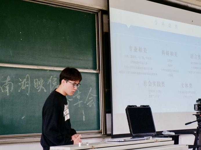 本站讯(通讯员谭玲摄影杨婧怡)3月21日上午,我院“南湖映像”影视大赛经验分享会在文一楼201室成功举行。本次分享会由我院23级辅导员韩婷主持,23级新闻传播学类全体本科生参加。分享会的嘉宾为21级汉语言文学本科生潘宇、郑爽以及21级广告学本科生梁正辉。