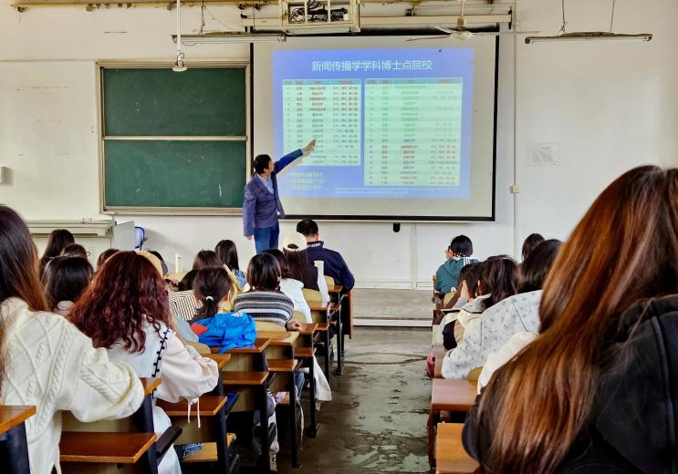 本站讯(通讯员朱雨濛摄影田甲禾)为引导学生充分了解新闻学、广告学、广播电视学专业特色、社会需求和就业前景,帮助同学们理性地选择专业,我院于3月15日上午召开2023级新闻传播类专业分流宣讲会。本次会议由新闻传播类专业2023级学生李啟蓉主持,新闻学教研室主任郝永华教授、广告学教研室黄迎新教授、广播电视学教研室阎春来教授出席本次会议。
