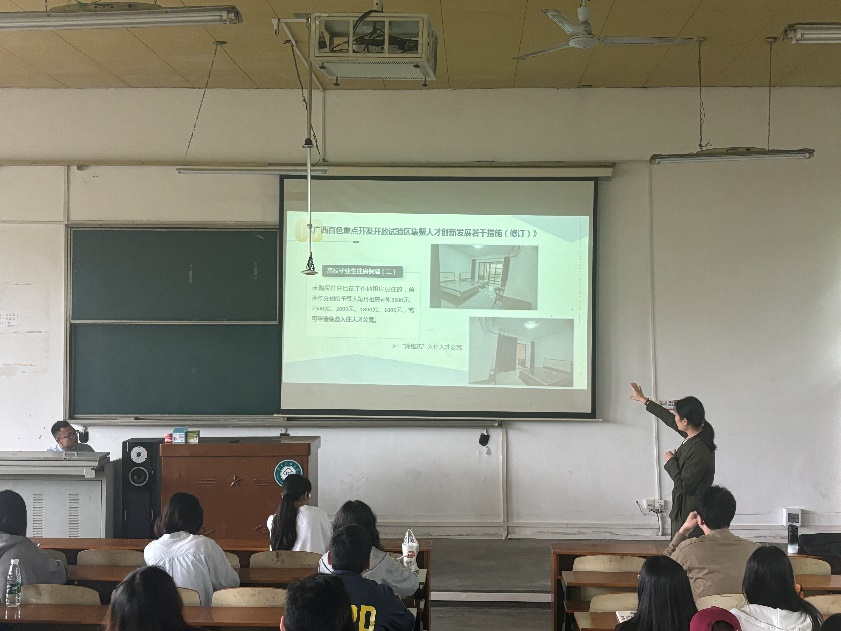 本站讯(通讯员:袁萌梓 拍摄:张浈芳)4月17日上午,广西百色市委组织部来我院宣讲人才引进相关政策,会议由中共百色市委员会组织部人才工作科科长、百色市人才储备发展中心主任杨晓毅主讲,学院部分教师、在读博士生、硕士生及本科生参加会议。