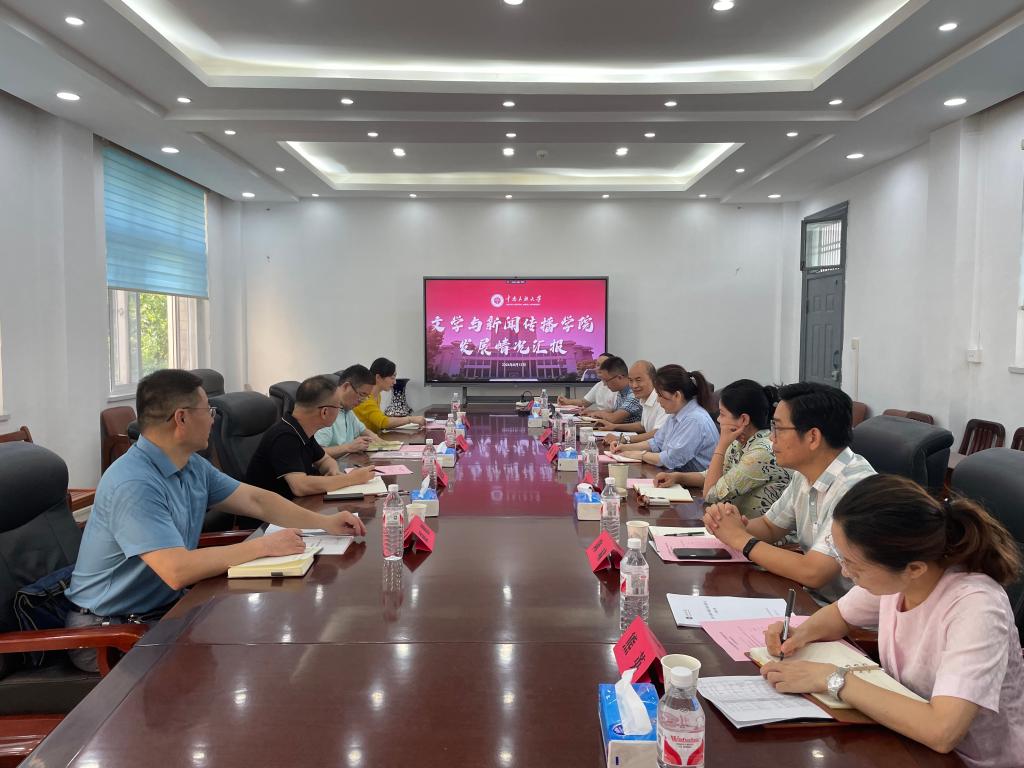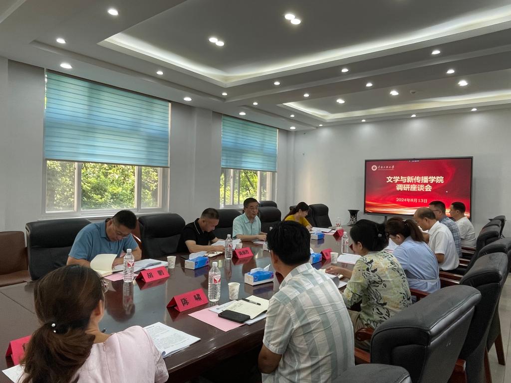 8月13日上午,校长刘义一行到文学与新闻传播学院调研指导工作。校党政办主任陈强胜、人事处处长江莹、研究生院副院长胡鹏、文学与新闻传播学院领导班子成员参加调研座谈会,座谈会由学院党委书记谢岚主持。