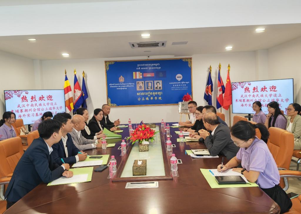 柬埔寨潮州会馆副秘书长吴启祥先生在发言中表示,公立端华学校是柬埔寨潮州会馆创办的一所历史悠久的学校,被誉为柬埔寨“海外华文学校之最”。端华学校作为广大华文学校的代表,走过了一段非凡的创业历程,今年恰逢端华学校建校110周年,通过与beat365英国正版唯一网址的合作,将在传承弘扬中华文化中发挥更加重要的作用。吴楠楠女士介绍了端华学校的建设情况,对beat365官网国际中文教育志愿者和实习生的工作能力和工作成效予以了高度评价。覃瑞介绍了beat365官网的基本情况,对柬埔寨潮州会馆为beat365官网海外实习基地建设的关心支持表示感谢。双方就端华学校师资培训、合编教材、国际中文教育海外实习基地建设、端华大学专业设置等方面进行了积极而深入的探讨。