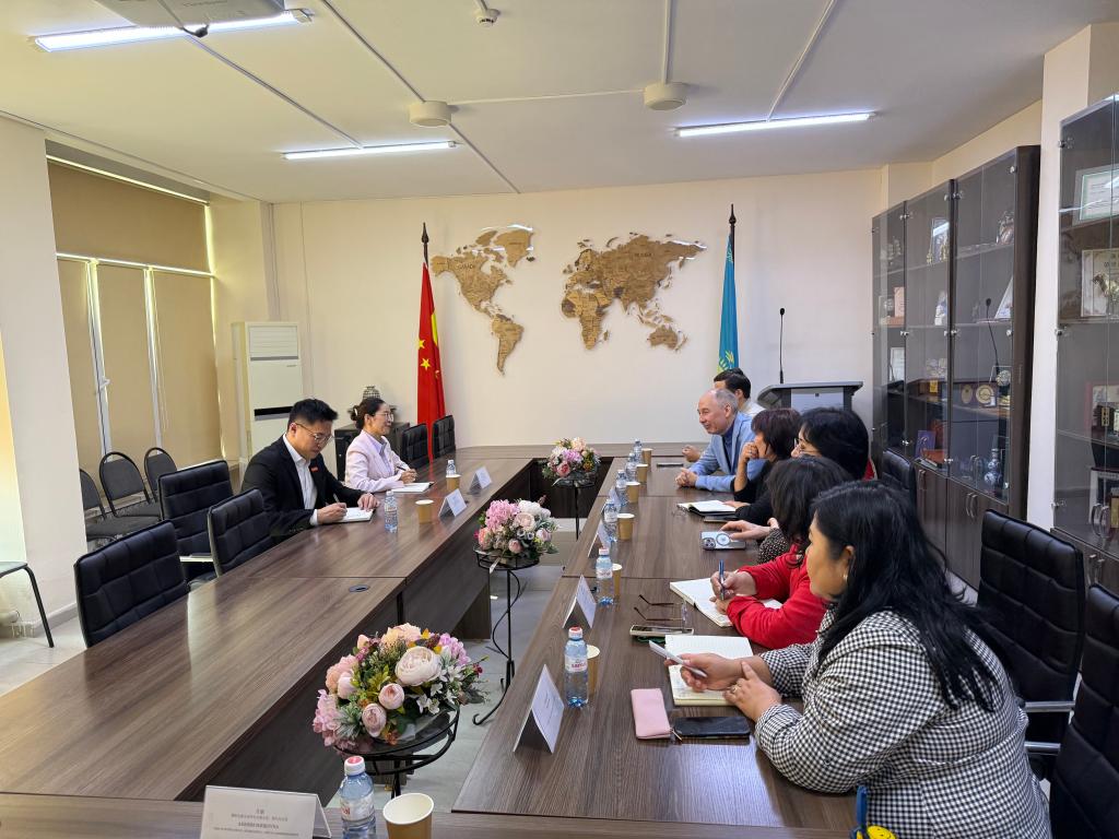 熊英副院长与塔勒哈特院长就双方进一步加深交流合作进行深入洽谈。熊英副院长希望双方将继续深化合作,进一步完善实习实践方案,积极推动海外实践实习基地建设,助力“一带一路”高质量发展,为促进中国和哈萨克斯坦之间的文化交流取得更大实效。