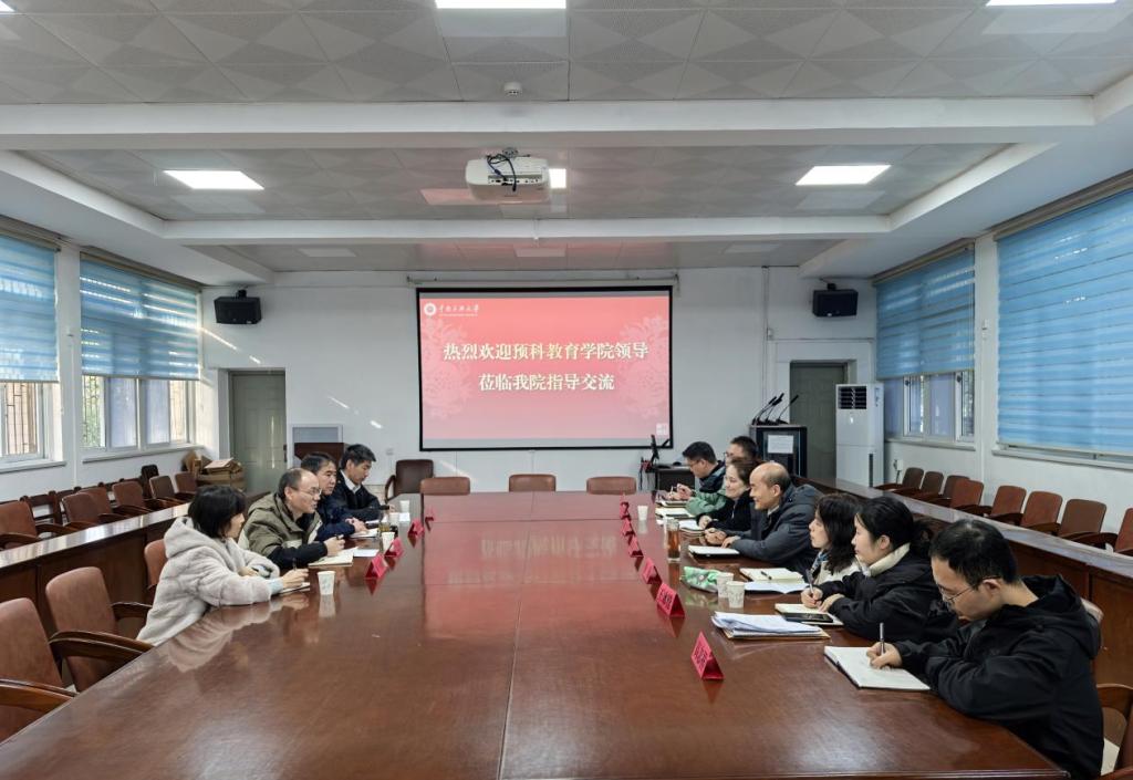 副书记牛磊对学院预科内升同学的学业方面基本及日常生活情况进行了介绍。随后,双方就预科教育教学、本科教育教学的多个议题展开了深入细致的交流和经验分享。与会人员充分交流了各自在预科教育教学实践中的经验和思考。通过座谈交流,进一步加深了两院之间的了解,双方都从中获得了宝贵的经验和启示。