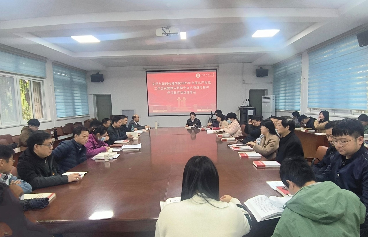 2025年3月28日上午,文学与新闻传播学院党委召开2025年全面从严治党工作会议暨深入贯彻中央八项规定精神学习教育动员部署会,