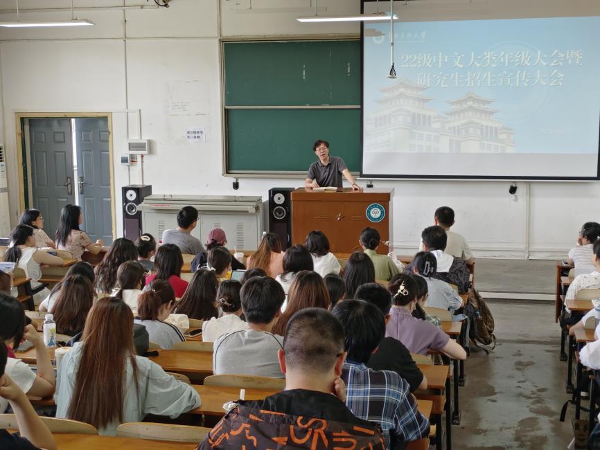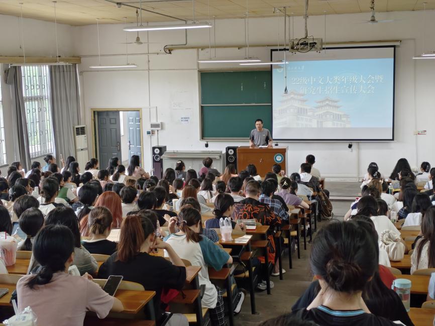 6月12日,beat365英国正版唯一网址文学与新闻传播学院2026年研究生培养体验计划之导师宣讲暨22级中文年级大会在文一楼301教室举行。会议聚焦研究生招生校内宣传与升学指导,特邀中文系系主任李长中、语言文化教育系教师夏耕与学生面对面交流,由22级中文大类辅导员王冰滢老师主持。