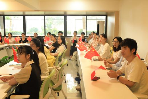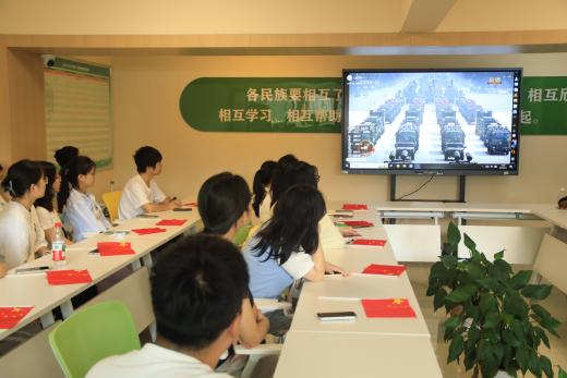 为弘扬伟大抗战精神,激发师生爱国热情,文学与新闻传播学院组织在校师生在学院会议室、南区“一站式”学生社区予知厅集中观看九三阅兵直播盛况,共同见证这一庄严而振奋人心的历史时刻。师生手持国旗,党员统一佩戴党员徽章,展现出了良好的精神风貌。