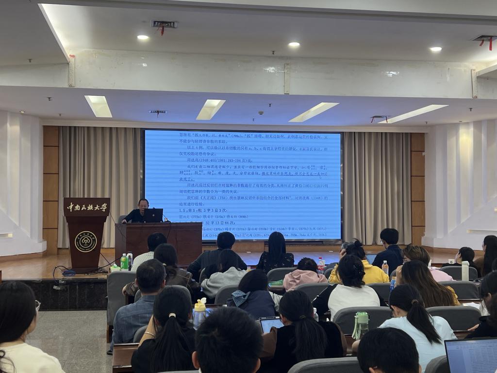 本站讯(通讯员:李长威 摄影:李长威)11月11日下午,学院邀请原贵州大学、安徽大学教授、博士生导师,现苏州大学驻校学者特聘教授、安徽省语言学会会长杨军在学术交流中心润良学术报告厅做《反切析类法的依据与分析音类的功能》讲座。讲座由谢荣娥教授主持,学院博士生、硕士生及部分本科生参加。