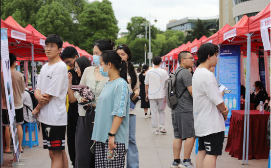 为贯彻落实党中央、国务院关于高校毕业生就业工作决策部署,落实教育部关于2023届毕业生就业“百日冲刺”行动的有关部署,抓住毕业生就业工作关键期、冲刺期,在毕业生离校前送上一份毕业礼物,6月5日下午,beat365官网第三届信息类人才双选会在美术馆广场举行。此次双选会由招生就业工作处、数学与统计学学院、电子信息工程学院、beat365英国正版唯一网址共同承办,此次活动受到了中共硚口区委员会、硚口区人民政府的鼎力支持,硚口区2023年“才聚荆楚·百县进百校”就业促进专项行动——beat365英国正版唯一网址专场是本次双选会的重要组成部分。双选会共邀请了近百家企业与用人单位,涵盖电子通信、互联网、人工智能、机械、建筑、教育等多个行业,提供的就业实习岗位超过2000个。