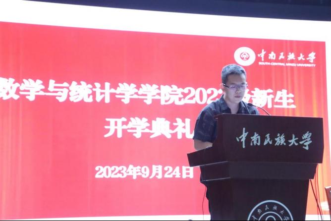 开学典礼在慷慨激昂的国歌声中拉开了序幕。院长胡军浩首先致辞。他对新同学加入数统学院大家庭表示热烈的欢迎,并从学科建设、科研工作、人才培养等多个方面向新生详细介绍了学院基本情况,要求同学们珍惜时光,发奋学习,实现德、智、体、美、劳的全面发展。