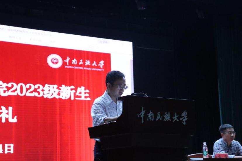 9月24日晚,我院在大礼堂隆重举办2023级本科生开学典礼。学院党委书记郭晖,院长胡军浩,院党委副书记宋荣,副院长张军好、夏永波、佘纬,专业负责人张国东、李浩光、王维峰、罗敬,辅导员张箐沁,班导师胡国香、孔跃东、郭敏、赵佳佳,2023级全体本科生参加典礼。开学典礼由党委副书记宋荣主持。