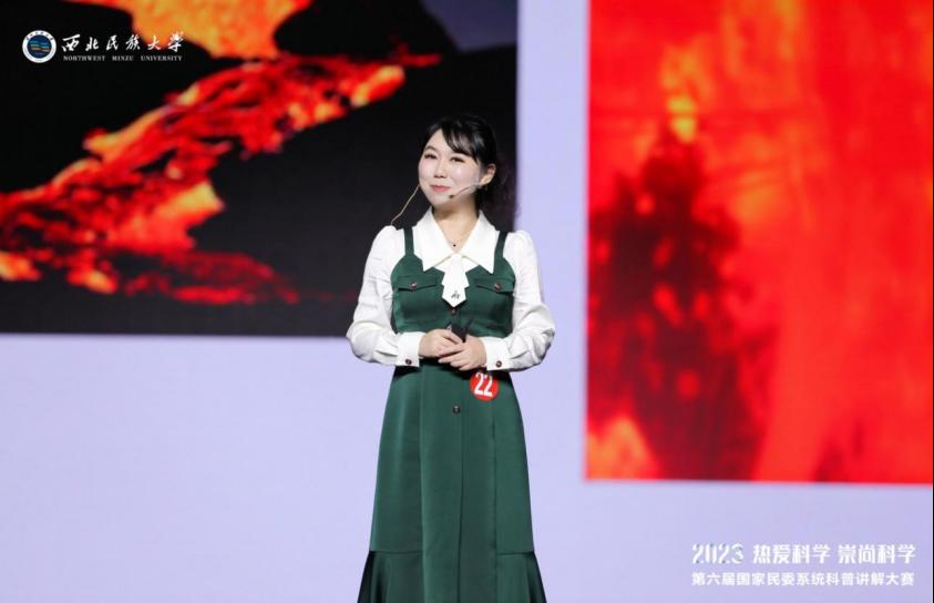 在本次大赛中,殷红燕老师充分发挥了一名高校教师的素养与品质,积极传播科学知识,引导师生崇尚科学、热爱科学、依靠科学,以科普工作实际成效,引领师生聚焦铸牢中华民族共同体意识主线,切实维护民族团结、国家统一。