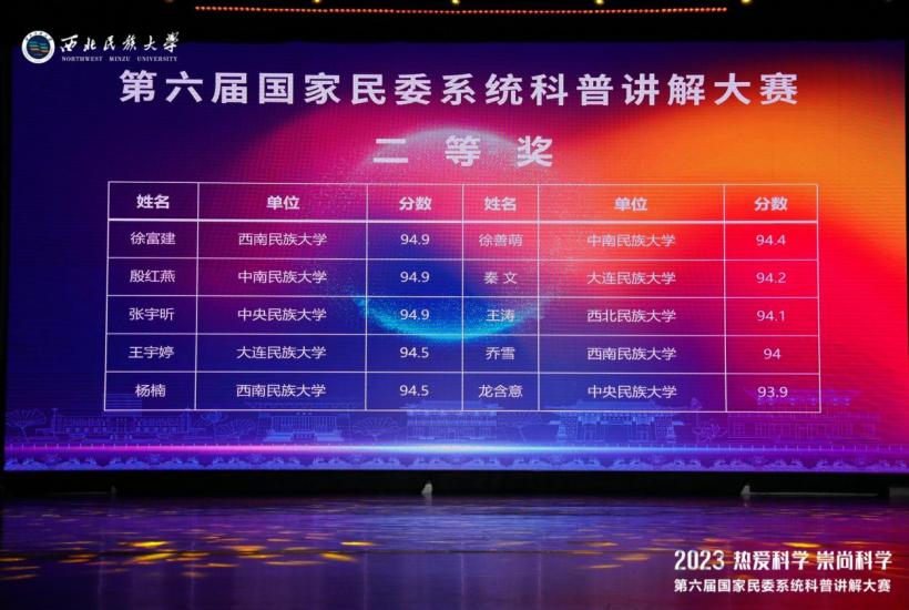 经过激烈角逐,我院教师殷红燕斩获了本次大赛二等奖。殷红燕老师将原本深奥的科学原理变得生动有趣、通俗易懂,赢得了现场观众的阵阵掌声,让观众们在领略和感受到科学的魅力和科技蓬勃发展的同时,充分展现了民委系统干部职工、高校师生的良好精神风貌和新时代科普工作者的卓越风采。