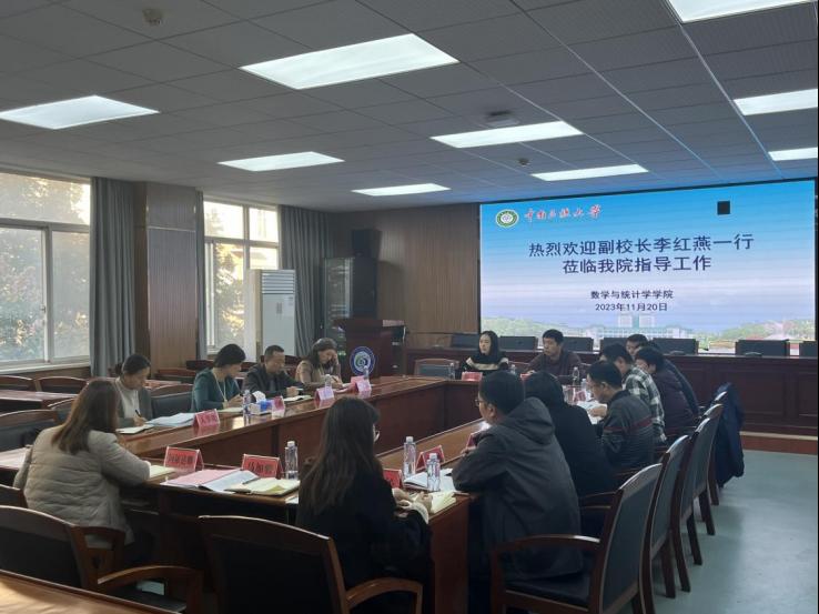 11月20日下午,校党委常委、副校长李红燕,党委学生工作部副部长刘红娟,党政办副主任田磊,人事处副处长张雯君一行到数学与统计学学院调研指导工作。学院领导班子成员、办公室人员及全体辅导员参会。会议由学院党委书记郭晖主持。