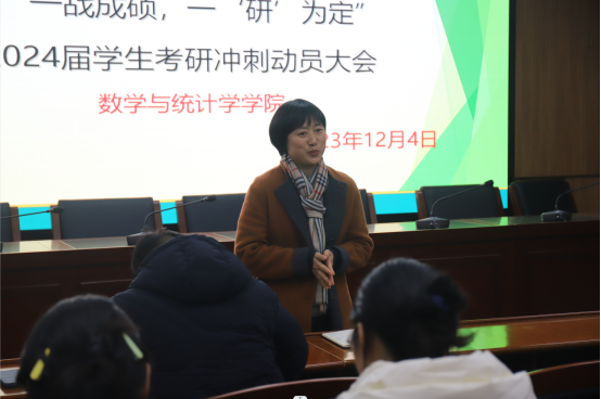 党委副书记宋荣首先发言,她带领同学们回顾了过去几个月复习备考的整体情况,充分肯定了全体同学一以贯之的勤奋付出和踏实认真,她鼓励同学们在接下来的二十天内继续坚定信心,努力拼搏,以饱满的精神和乐观的态度投入到考研冲刺复习中去。