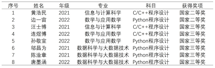 本届“蓝桥杯”数统学院共有88名同学积极参与,其中44名同学在省级比赛中荣获奖项,11名同学成功跻身国赛。在激烈的国赛角逐中,数统学院的学子们不负众望,两名同学荣获国家二等奖,六名同学荣获国家三等奖。