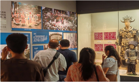活动伊始,校友们在志愿者引导下走进民族学博物馆。首先参观了古朴的民族服饰和精巧的传统器物,感受丰富的展品生动展现的多元文化脉络。行至二楼观景台,南湖波光粼粼,垂柳依依如旧,校友们凭栏远眺,感慨道:“这片湖光树影,还是当年求学时的模样啊!”