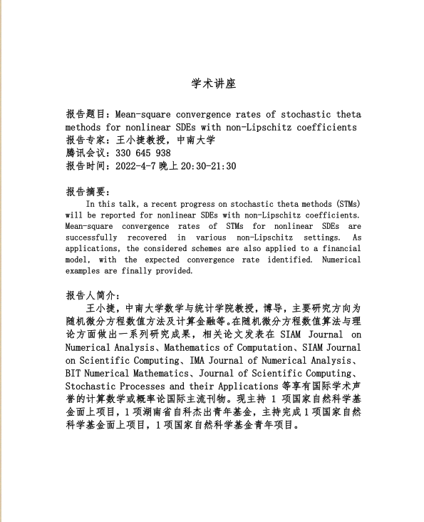 【学术讲座】4月7日河海大学刘磊教授、中南大学王小捷教授学术讲座通知