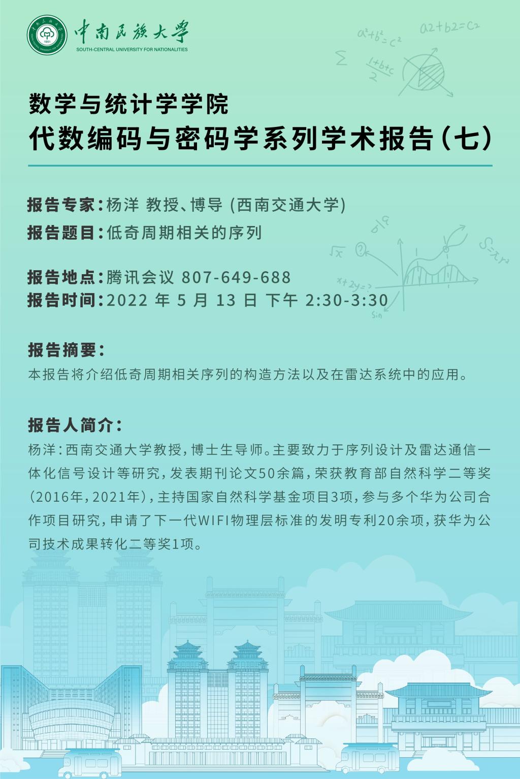 【学术讲座】5月13日西南交通大学杨洋教授学术讲座通知