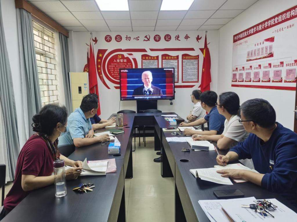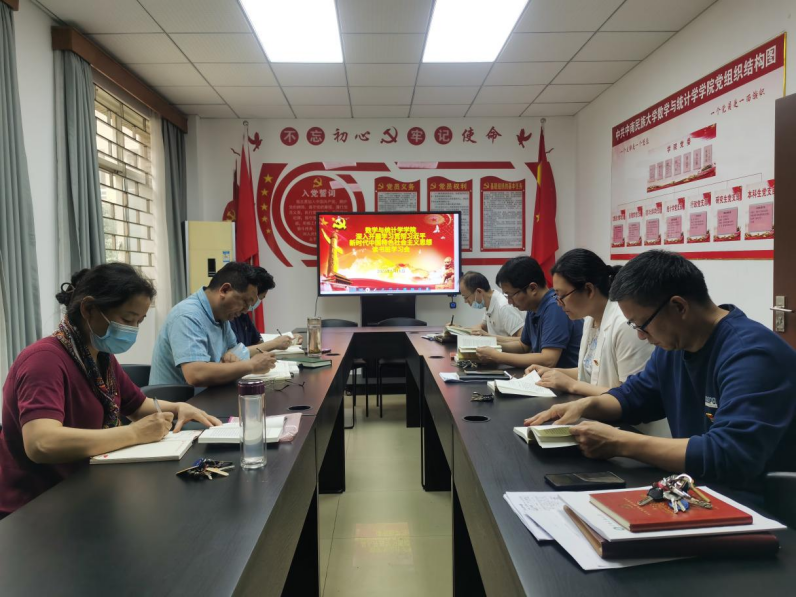 5月16日下午,数学与统计学学院党委全体委员在9号楼129会议室深入开展学习习近平新时代中国特色社会主义思想读书班第四次学习会。此次学习会由学院党委副书记郭琳同志,副院长夏永波同志共同领学《习近平新时代中国特色社会主义思想学习纲要(2023 年版)》相关内容。随后,全体党委委员共同观看名为“大国格局”的纪录片。
