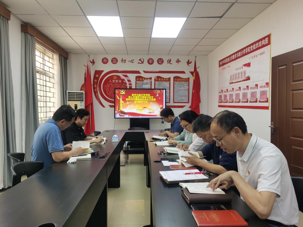 5月18日下午,数学与统计学学院党委全体委员在9号楼129会议室深入开展学习习近平新时代中国特色社会主义思想读书班第五次学习会。此次学习会由学院副院长朱忠熏、张军好2位同志共同领学《习近平新时代中国特色社会主义思想学习纲要(2023 年版)》相关内容。