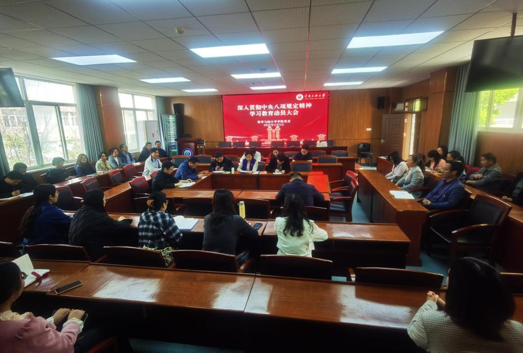党委副书记宋荣传达了学校全面从严治党工作会议暨深入贯彻中央八项规定精神学习教育部署会和《中共beat365英国正版唯一网址委员会关于开展深入贯彻中央八项规定精神学习教育的实施方案》精神和要求。