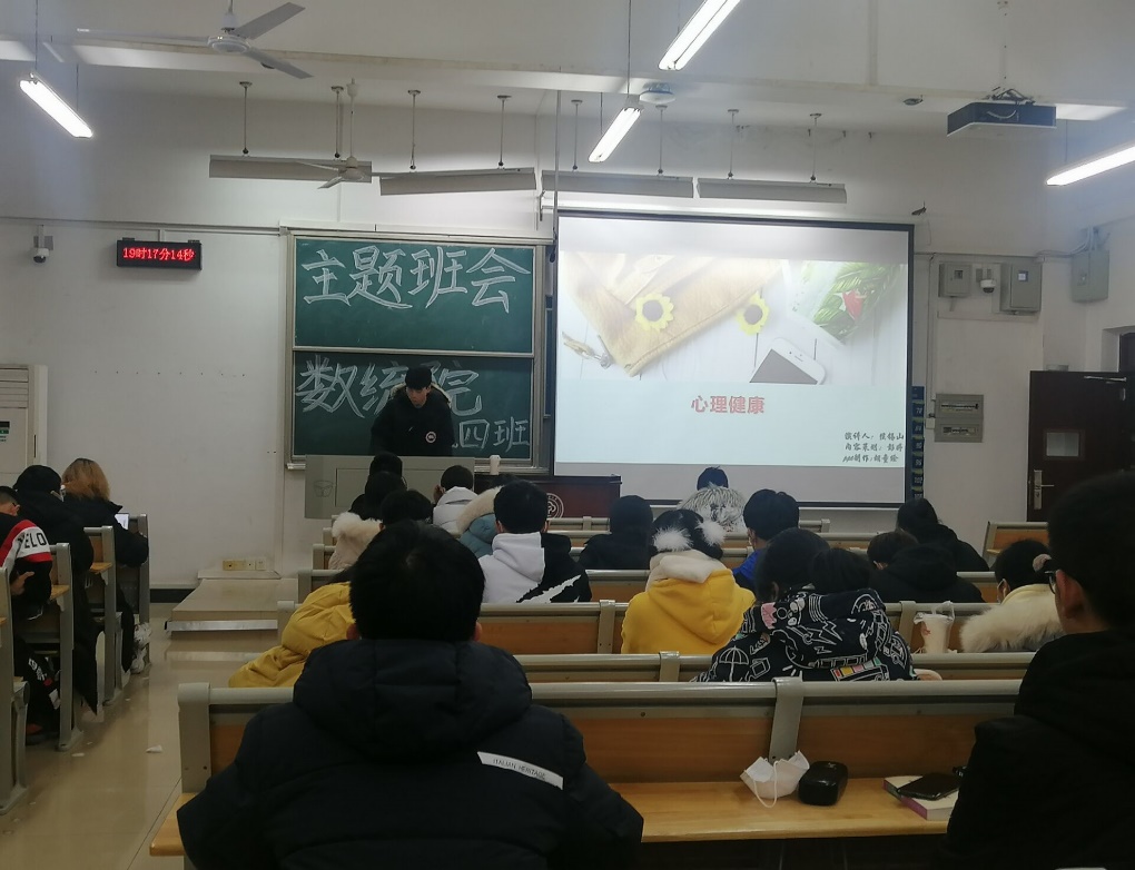 各班代表向同学们说明心理健康不仅仅是没有疾病,没有痛苦的心理状态,更是一种积极的、能够使人们不断进步的心理状态,当代大学生心理问题常表现为为适应问题、情感问题、学习问题以及行为和人格偏离,心理健康受身体、心理、行为与环境四方面影响。各班代表积极分享调整心理的办法,在遇到困难时,应主动向心理辅导老师求助;主动关爱他人,积极回报社会;与同学分担痛苦,分享快乐;阅读相关书籍,参加相关活动;多进行交流。