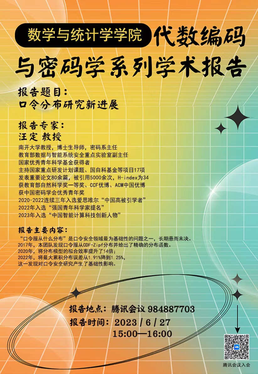 【学术讲座】6月27日南开大学汪定教授学术讲座通知