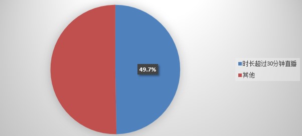 以下将围绕直播时长在30分钟以上的264场直播进行分析。由于1学时为45分钟,初步认定时长在30分钟以上,且直播发起人类别为教职工的直播是有效上课直播。在264次直播中,本预科生发起直播8次,占比3%;研究生发起直播1次,占比0.3%;教职工发起直播255次,即有效上课直播255次,占比96.6%。