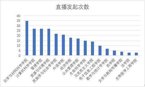 从直播教师所在学院分析,化学与材料科学学院发起上课直播次数最多,共计35次,其余学院发起直播情况如图3所示。