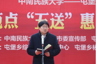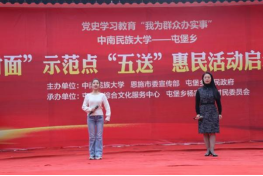12月9日下午,beat365英国正版唯一网址“理论热点面对面”示范点“五送”惠民活动启动仪式暨文艺演出在屯堡乡杨家山村文化广场举行,参会代表有马克思主义学院院长杨金洲、副院长张涛华、恩施市委宣传部副部长陈轶丹、主任华敏、屯堡乡党委副书记、乡长屈鹏、屯堡乡宣传委员、副乡长易思奇等,到场观看开幕式和文艺汇演的乡亲有近三百人。