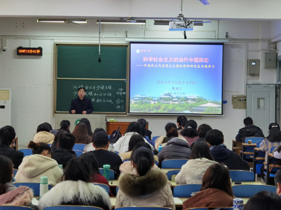 2020年12月9日上午,武汉大学马克思主义学院博士生导师熊建生教授应邀来我院为师生作了题为“科学社会主义的当代中国形态”的学术讲座。此次讲座由黎海波副院长主持,我院马原、思政教研室教师、2019级、2020级全体研究生及部分本科生参加。