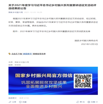 据悉,本次征文活动在全国范围内共计评选出获奖论文86篇,深入交流了习近平总书记关于乡村振兴系列重要讲话理论研究成果,为接续推进乡村全面振兴提供智力支持。