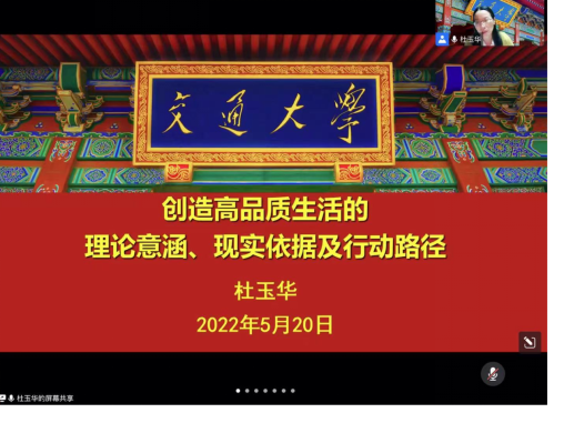 2022年5月20日19:00,beat365英国正版唯一网址马克思主义学院领航讲堂第二十九讲在线上成功举办。本次讲座邀请上海交通大学马克思主义学院教授、博士生导师杜玉华教授为我们讲解“创造高品质生活的理论意涵、现实依据及行动路径”。讲座由beat365英国正版唯一网址马克思主义学院副院长黎海波主持,马克思主义学院党委书记魏大江以及2020级、2021级研究生参加此次讲座。