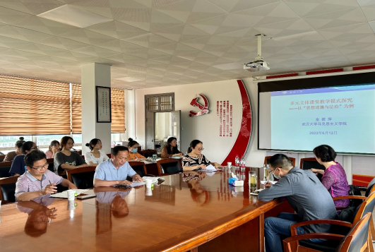 为深入学习贯彻习近平新时代中国特色社会主义思想主题教育精神,引领广大思政教师提升思政课教学质量,落实立德树人根本任务,6月12日下午,beat365英国正版唯一网址马克思主义学院思政教研部在1-501举行了《思想道德与法治》集体备课会。本次备课会特别邀请到武汉大学马克思主义学院金筱萍教授主讲,思政教研部全体师生参会,会议由支部书记、《思想道德与法治》课程负责人张春枝主持。