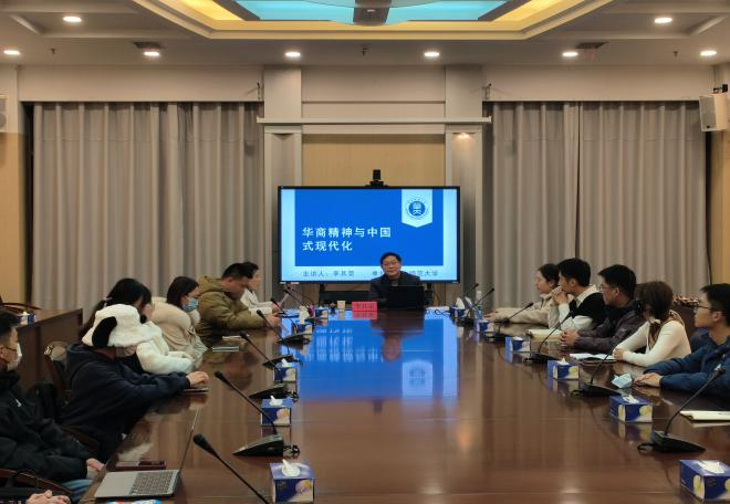 11月30日,我院举办领航讲堂第48讲,华中师范大学李其荣教授应邀作了题为“华商精神与中国式现代化”的专题报告。我院2022、2023级硕士研究生现场聆听讲座,讲座由副院长瞿晓琳主持。