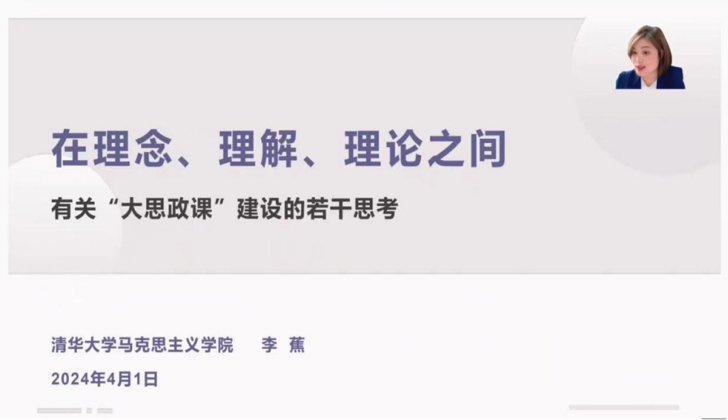 讲座中,李蕉教授从理念、理解、理论三方面对“大思政课”进行了阐释。在理念层面,她回顾了近年来“大思政课”在思想政治工作规划中的展开,指出教育管理部门在领导方式上从“管理”走向“治理”。在理解层面,她指出,“大思政课”的本质仍然是课,这一新形态的“课”重在将课堂中的马克思主义理论讲出时代性、针对性。以清华大学的思想政治理论课为例,她阐述了思政课教师应如何理解思政教育与人才强国、高等教育以及强国建设之间的逻辑关系,并深入剖析了“大思政课”为何能在短时间内推动思政课的改革创新这一重要命题。在理论层面,“大思政课”建设是一条改革的“显线”,思想政治教育自主知识体系的构建是一条创新的“隐线”,二者相辅相成、互为表里。“大思政课”的知识生产方式更利于当下学科转型。从“思政课”到“大思政课”的转变,受益于教育管理部门、思政课教师与思政教育学者的共创共为,其课程构建方式与知识生产方式将带来一场更深远的系统性变革。