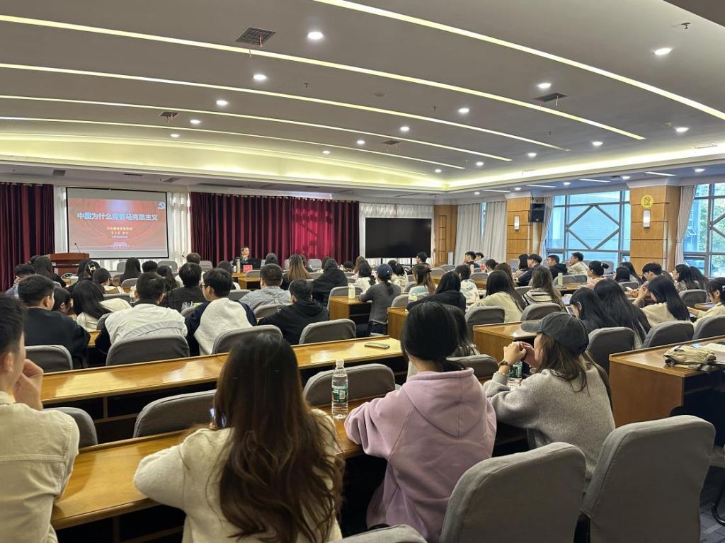 10月25日下午,我院举办领航讲堂第57讲。中国历史唯物主义学会常务理事、湖南省委党校覃正爱教授应邀作了题为“中国为什么需要马克思主义”的专题讲座。我院部分教师及2023、2024级硕士研究生现场聆听讲座,讲座由副院长瞿晓琳主持。