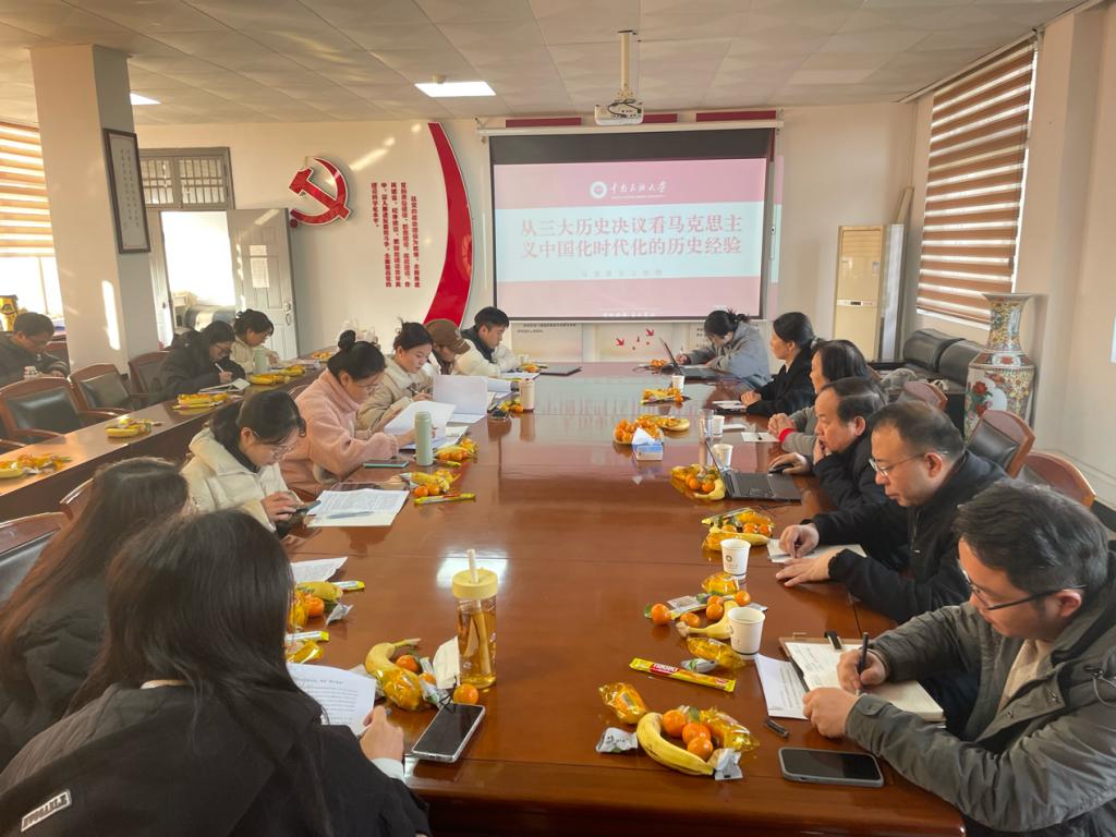 12月5日上午,我院举行第三十三期“知·行”读书会,本次研讨主题为“从三个决议看马克思主义中国化时代化的历史经验”。马克思主义中国化学科张瑞敏、易新涛、瞿晓琳、孙卫华、胡祥、高海波六位老师应邀参加,马克思主义中国化专业2024级、2023级研究生参加读书会。读书会由2024级研究生黄月想主持。