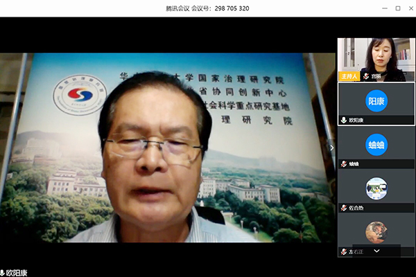 欧阳康教授线上授课。马克思主义学院供图