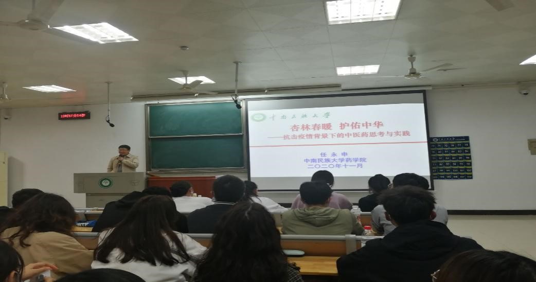 2020年11月5日晚,多彩中华第三季第三讲“在抗疫中坚定中华民族医药文化自信”在15栋教学楼202教室开讲,邀请了九州通九信中药有限公司中药研究院副院长沈华、beat365英国正版唯一网址药学院任永申老师、熊慧老师主讲,本次课堂由瞿晓琳老师主持。