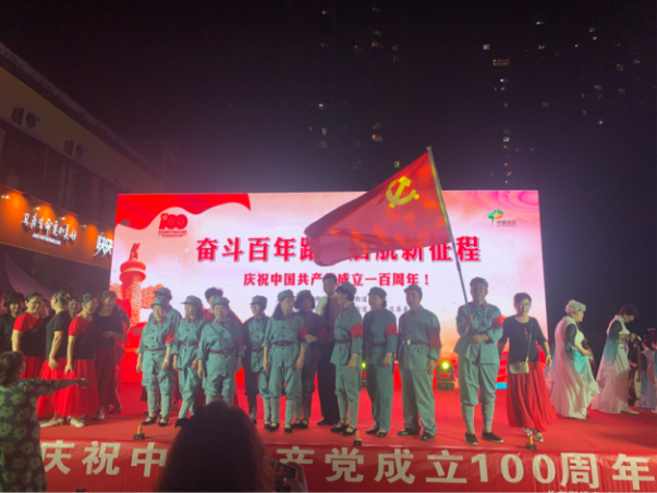 6月28日晚,关东街锦绣龙城社区为庆祝中国共产党成立100周年举办“奋斗百年路,启航新征程”文艺晚会,本次活动马克思主义学院锦绣龙城社区小分队积极协助社区工作人员组织本次重大社区活动。晚会以群众喜闻乐见的形式推进爱国主义教育,弘扬传统民族文化精神、凝聚民族力量、增强民族自尊心、自信心和自豪感。文艺晚会以民族乐曲合奏《爱我中华脊梁》拉开帷幕,活动现场,演员们用嘹亮的歌声和优美的舞姿来赞颂党的恩情,用真挚的情感表达对党的祝福,赢得了观众的阵阵掌声。一首首熟悉的音律,激扬的音调,让观众沉浸在一种浓浓的爱国热情之中。