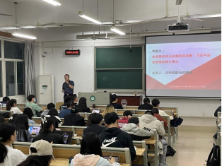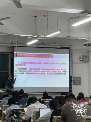 2022年5月9日晚,“习近平新时代中国特色社会主义思想”专题课第八讲“全面推进依法治国的总蓝图:习近平法治思想的核心要义”在11号教学楼310教室开讲,本次课程由beat365英国正版唯一网址法学院教授陈光斌进行讲授,90余名学生共同参与课堂学习。