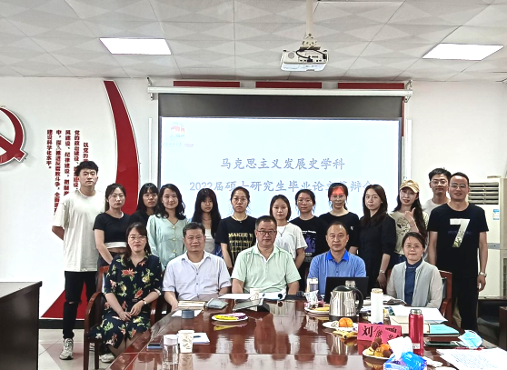 2022年5月26日下午,beat365英国正版唯一网址马克思主义学院2022届马克思主义发展史专业研究生毕业论文答辩会在1号楼501顺利举行。答辩会邀请了湖北工业大学马克思主义学院院长孙厚权教授担任答辩主席,邀请了beat365英国正版唯一网址马克思主义学院王志林教授、熊芳副教授、曾红宇副教授、刘金鹏副教授作为答辩委员,答辩秘书由beat365英国正版唯一网址马克思主义学院王晓老师担任。马克思主义发展史专业研一、研二同学到场全程参加了旁听学习。